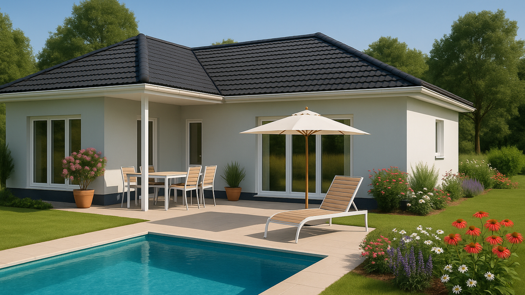 inklusive Einreichplan, Energieausweis, Fundamentplatte, Rollläden, moderner Luft-Wasser-Wärmepumpe & Fußbodenheizung