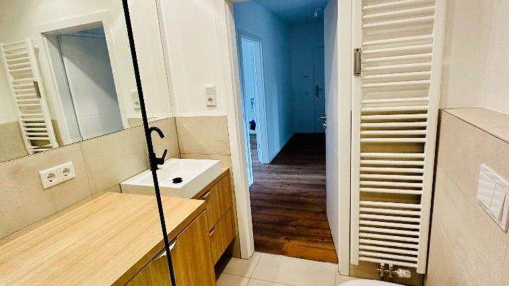 In der gesamten Wohnung sind die Fußböden, abgesehen vom Badezimmer, mit hochwertigem Vinyl-Bodenbelag ausgelegt.
