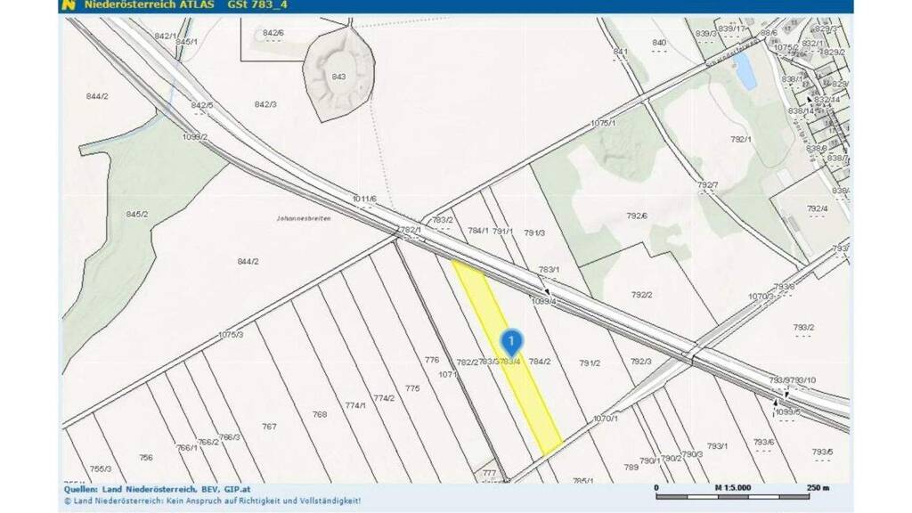 Die beiden Grundstücke sind derzeit verpachtet (bis Ende 2033). Die Pacht beträgt 600 € p/a. Eines der Grundstücke liegt zwischen Heidentor und B9, das Zweite an der L167~ 200 m außerhalb der Ortsgrenze .