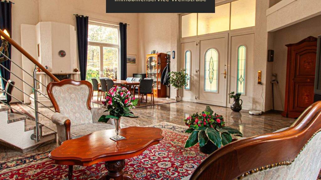 Zum Verkauf steht ein repräsentatives, freistehendes Anwesen mit einer großzügigen Doppelgarage auf einem ca. 1.031 m² großen Grundstück. Schon beim Betreten offenbart sich der besondere Charakter dieser Immobilie: Die großzügige Eingangshalle setzt ein architektonisches Statement und bildet das stilvolle Entree dieses Hauses - ein Ort, der Raum und Eleganz vereint.