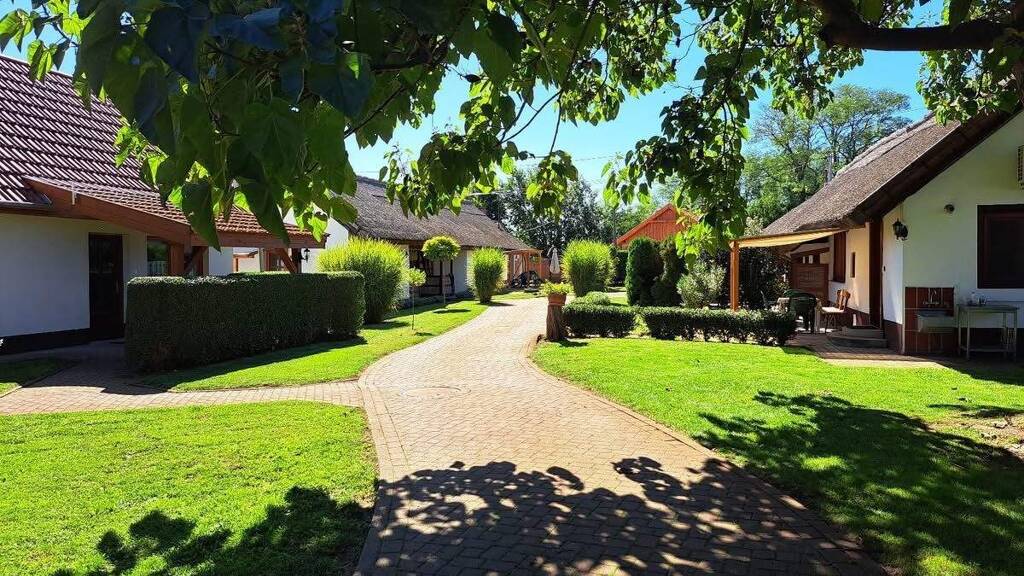 Der gepflegte, schattige Innenhof, gemütliche Sitzbereiche, der Pool sowie der liebevoll angelegte Garten schaffen eine einzigartige Atmosphäre – eine echte ländliche Oase in einer der beliebtesten Regionen des Theiß-Sees.
