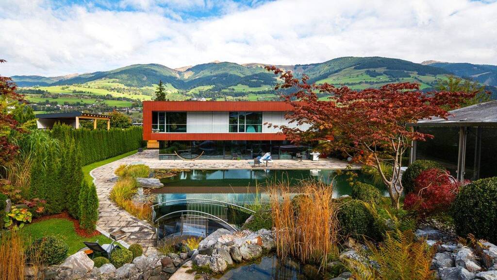 Willkommen in einer Immobilie, die ihresgleichen sucht. Die Naturresidenz-Villa am Sonnenteich vereint außergewöhnliche Architektur, durchdachte Raumplanung und eine einzigartige Verbindung von Wasser, Licht und Natur. Eingebettet in die malerische Kulisse der Hohen Tauern bietet dieses Anwesen ein unvergleichliches Wohngefühl – modern, elegant und naturverbunden zugleich.