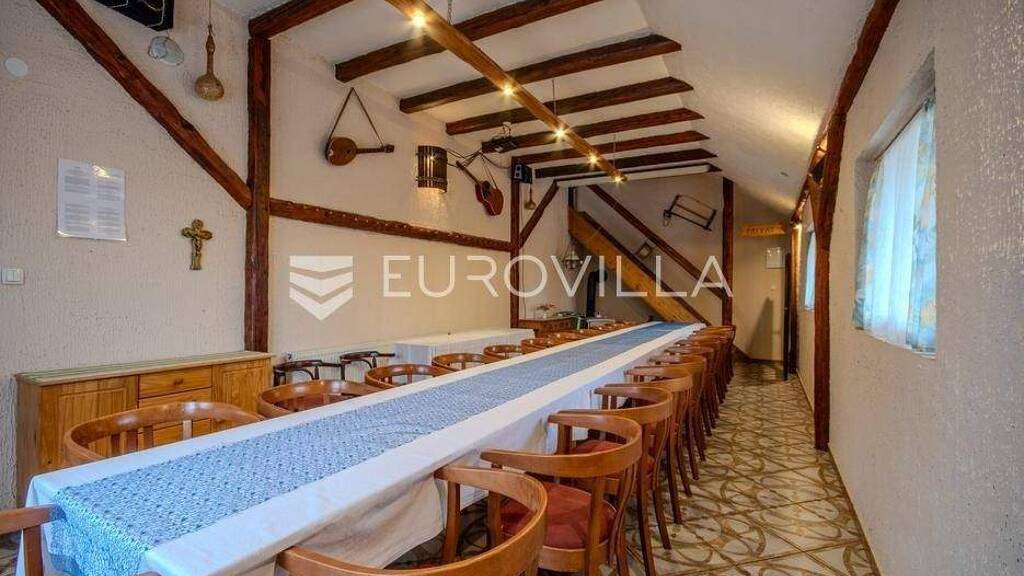 Varazdin, Hallers, uhodan i potpuno opremljen ugostiteljski objekt tlocrtne povrsine 110 m2, 5 minuta od centra grada, na mirnoj i izdvojenoj lokaciji. Bez dodatnih ulaganja, odmah spreman za rad.Raspored prostora:Podrum: prostorija za pripremu hrane, prostor s pekom i bilijarskim stolom, kuhinja te kupaonica, skladisni prostorPrizemlje: dvije prostrane sale (jedna sa sankom) te dva sanitarna cvoraPotkrovlje: studio apartman s vlastitom kupaonicomInfrastruktura i grijanje:Grijanje: centralno na kruta goriva i kaminStruja: trofaznaVoda: gradski vodovodObjekt ima kapacitet za oko 60 gostiju u unutarnjem prostoru, dok natkrivena terasa povrsine 40 m² omogucuje smjestaj za dodatnih 50 gostiju, te manja terasa za plus 20 osoba.Na zemljistu se nalaze tri pomocna objekta (44 m², 30 m² i 16 m²) koji nude brojne mogucnosti dodatne monetizacije - skladisni prostori, smjestajne jedinice, radionice ili drugi sadrzaji prema potrebi buduceg vlasnika.Ukupna povrsina zemljista iznosi 5.969 m², u potpunosti je ogradena i uredena, a obuhvaca:vocnjak i ureden okolisterase i djecje igralisteparkiraliste za desetak vozilaukrasno jezerceProstrano i ogradeno zemljiste, osiguran parking i kompletna infrastruktura cine ovu nekretninu idealnom investicijom za seoski turizam, event-prostor, OPG ili ugostiteljsku djelatnost uz minimalna pocetna ulaganja.Za vise informacija i dogovor oko razgleda, slobodno nas kontaktirajte!... Vise na eurovilla.hr, ID: 381364