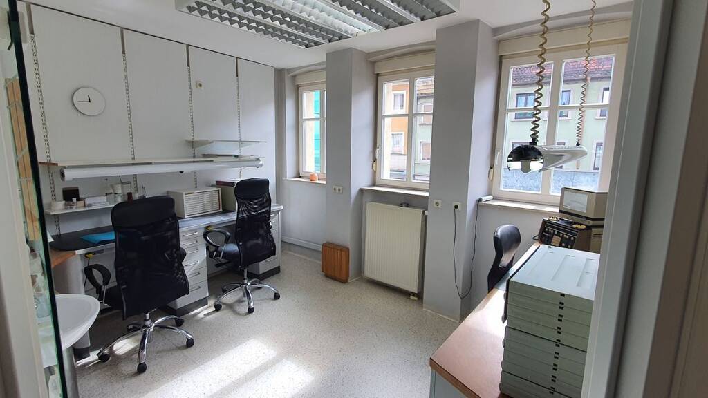 Wir freuen uns, Ihnen eine attraktive Gewerbeimmobilie im Herzen von Schweinfurt unweit vom Zeughaus anbieten zu dürfen. Diese vielseitig nutzbare Fläche im 1. Obergeschoss eines modernen Wohn- und Geschäftshauses bietet Ihnen die Möglichkeit, sofort in Ihr neues Geschäft einzusteigen. Die Immobilie verfügt über eine Fläche von insgesamt ~ 122 m², die sich ideal für ein Dentallabor oder andere kreative Geschäftsideen eignet. Der Laborbereich ist durch den Flur, der durch einen lichtdurchfluteten Lichthof führt, mit dem Sozialbereich und dem Büro verbunden. Zusätzlich verfügt die Immobilie über 2 Stellplätze – 1 Stellplatz auf dem Doppelparker und 1 Stellplatz in der Tiefgarage mit direktem Zugang zum Haus.