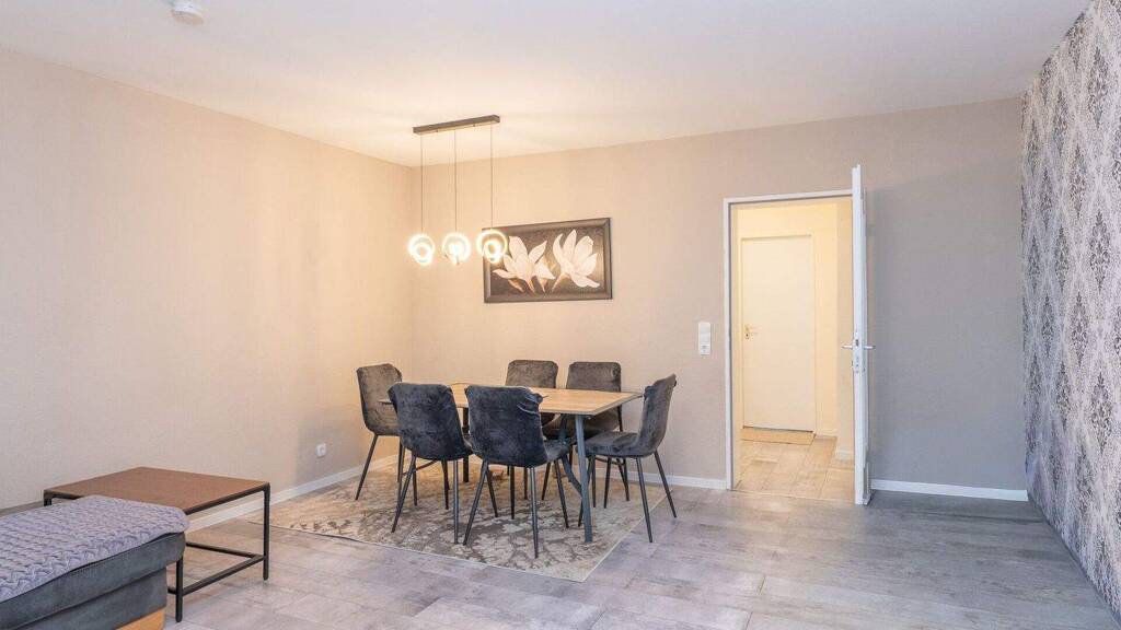 Die 2-Zimmer-Wohnung ist über wenige Stufen im Hochparterre des Hauses erreichbar und seit dem 01.06.2020 zuverlässig vermietet. Die aktuellen Mieter befinden sich aufgrund von Familienzuwachs aktiv auf Wohnungssuche, sodass zeitnah mit einer Neuvermietung zu rechnen ist. In diesem Zuge besteht die Möglichkeit, die Miete anzupassen. Derzeit beträgt die Nettokaltmiete 570 € pro Monat, was einer Jahresmiete von 6.840 € entspricht.