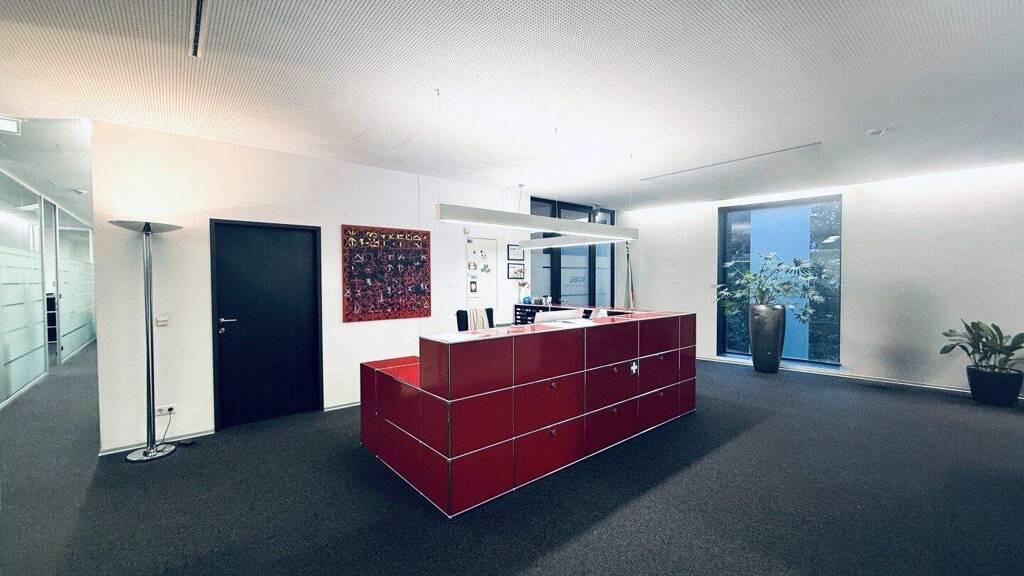 Der großzügige Eingangsbereich mit Empfang/Rezeption und integrierter Wartezone sorgt für einen professionellen ersten Eindruck.