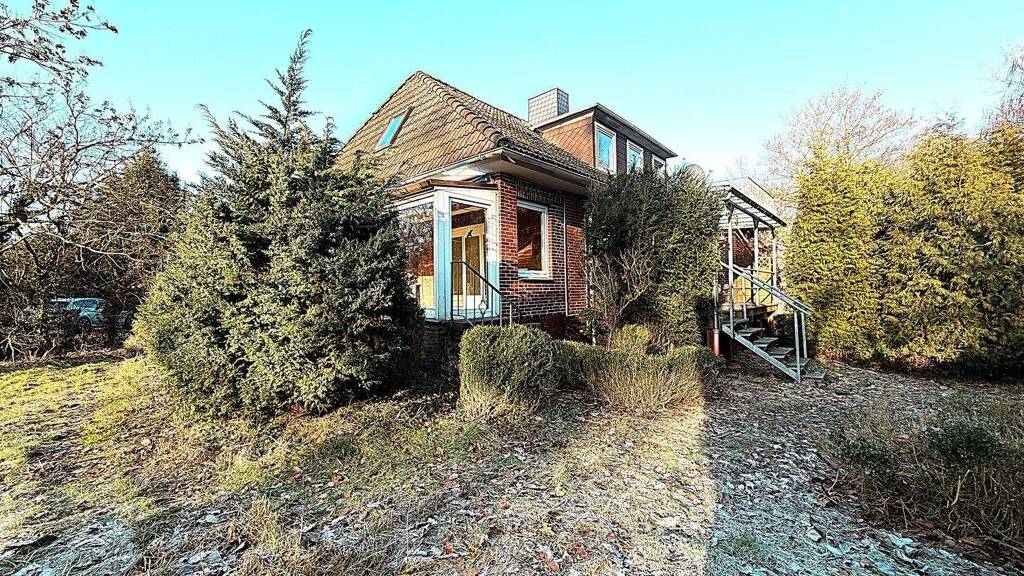 Großzügiges Einfamilienhaus mit Doppelgarage. Baujahr ca. 1960 in Massivbauweise, in den 1980ern und 2000ern Jahren modernisiert. Das Erdgeschoss hat ca. 113 m², das Obergeschoss ca. 56 m², im Keller gibt es weitere ca. 107 m². Es gibt einen Freisitz, einen Winter- garten (1985 angebaut) und Außenzugang zum Keller. Walmdach mit Dachgaube. Ölzentralheizung aus 2007 mit Warmwasserversorgung. Zudem gibt es einen Kaminofen. Sanitär- und Elektroinstallation in einfacher Ausstattung. Energieausweis: B, 250,9 kWh/(m²*a), Heizöl, Baujahr 1960. Es wird nur ein Teil des Flurstückes 178/2 verkauft (die Teilung und Vermessung wird vom Einlieferer beauftragt und bezahlt). Die restliche Fläche des Flurstückes wird in den kommenden Jahren für landschaftspflegerische Ausgleichsmaßnahmen und Straßenbaumaß- nahmen benötigt.