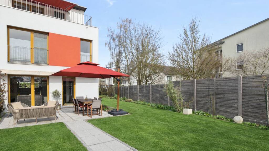Im Obergeschoss setzt sich der durchdachte Grundriss konsequent fort. Hier stehen ein großzügiges Schlafzimmer, ein Badezimmer sowie weitere gut nutzbare Flächen zur Verfügung, die sich ideal als Büro, Ankleide oder für individuelle Wohnbedürfnisse eignen. Das Dachgeschoss erweitert das Raumangebot um weitere helle Zimmer und wird durch die großzügige Dachterrasse in Südwest-Ausrichtung in besonderer Weise aufgewertet. Sie bietet einen geschützten Außenbereich mit hoher Aufenthaltsqualität und unterstreicht den besonderen Wohnwert dieser Immobilie.