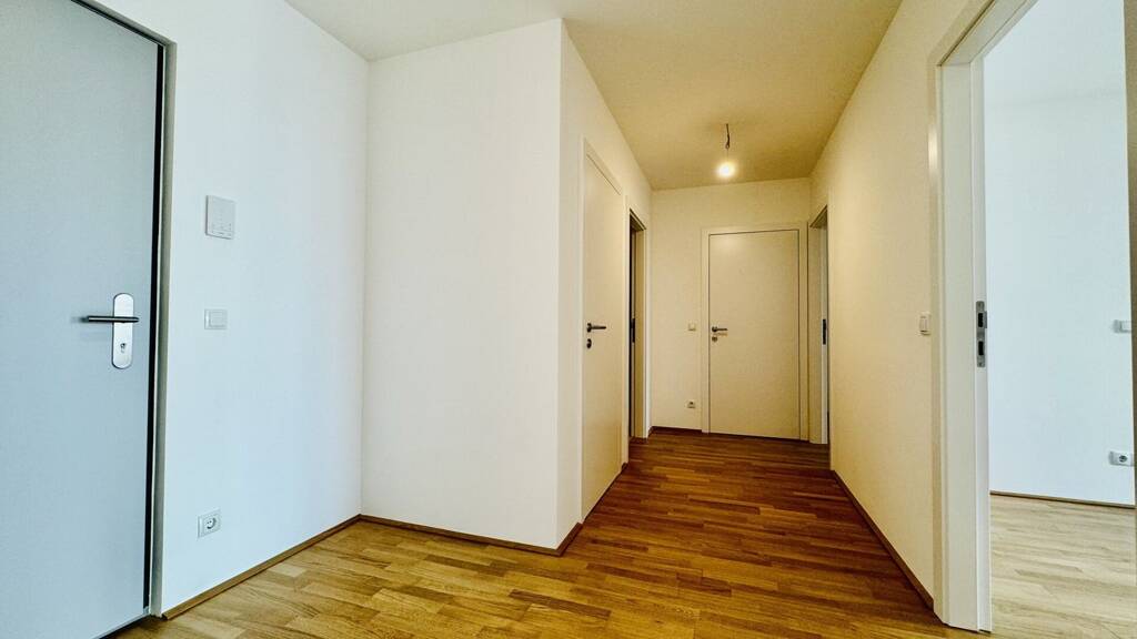 Hochwertiger Echtholzparkett, zukunftsorientierte, umweltbewusste Fernwärme sowie die Möglichkeit zur Vorbereitung der E-Tankstelle runden das Ganze ab.