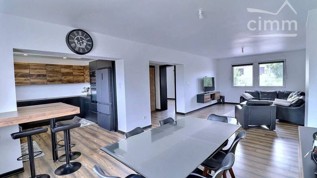 CIMM IMMOBILIER FORBACH bietet diese komplett renovierte Doppelhaushälfte mit einer Wohnfläche von 172,99 m² auf einem 620 m² großen Grundstück in Wousviller an. Das Haus besteht aus einer schönen, hellen Eingangshalle, die zu einem geräumigen, lichtdurchfluteten Wohnzimmer (34,10 m²) und einer offenen Einbauküche (10,55 m²) führt. Im Erdgeschoss befindet sich ein 3,80 m² großes Duschbad mit WC. Eine Treppe führt ins Untergeschoss mit Gartenausgang. Dort befindet sich eine 20 m² große Terrasse mit Zugang zum Garten.