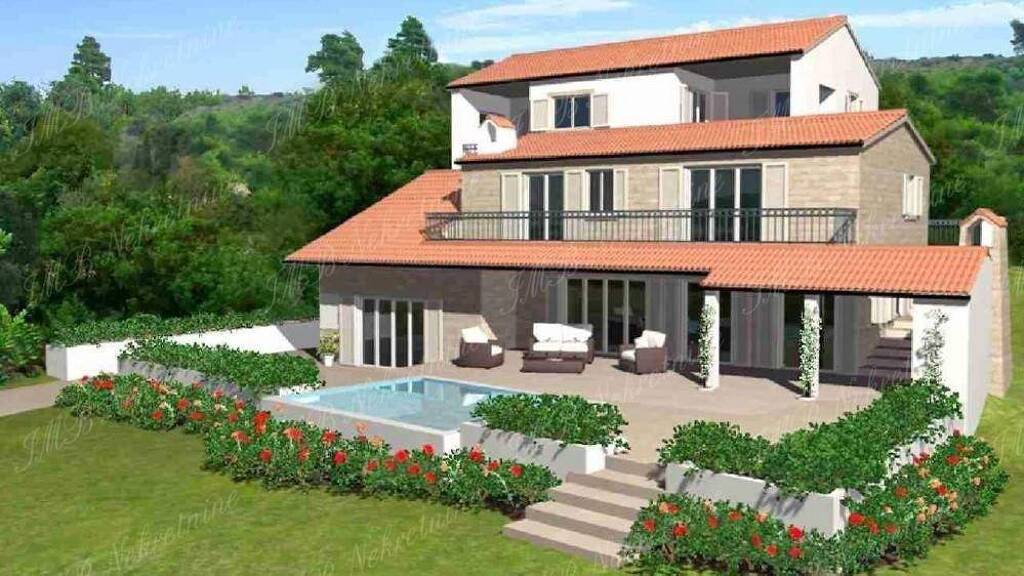 CALL FOR PRICE. Currently under construction, a modern yet traditional villa in a wonderful location on the hill overlooking the Adriatic to the front and with woods behind on the most beautiful island of the Dubrovnik area. The house is well designed. Its three levels blend well into the natural surroundings.At app. 370 m2 the Villa is ideal for summer gatherings, holidays for family and friends, or escaping from everyday life and enjoying everything Elaphites have to offer.Surrounded by gardens, terraces and balconies, the views are priceless. The smell of pine needles and the chatter of birds are perfect vacation for body and soul.The main entrance on the ground floor enters the hall and sitting room, large open plan kitchen and dining area. The whole ground floor enjoys access to the spacious terraces and the pool, which is surrounded by beautiful gardens with views across to the Adriatic. Off the hall there is access to the lower ground plant, laundry and storage rooms. There is also a luxurious guest toilet.An internal staircase leads to the first floor where there are 2 double bedroom suites with terraces overlooking the sea, a bedroom suite and a living/kitchen area facing the pine trees that would also make an excellent individual living space for a nanny or maid.On the third floor there are two bedrooms with balconies and a bathroom, as well as one full bedroom suite.The location is excellent, enjoying the highest position. Only 10 minute walk to the beach. The harbour promenade is only 5 minute walk.