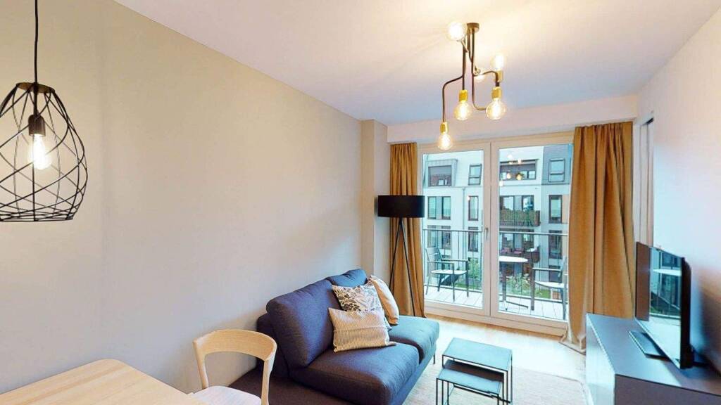 Die hier angebotene Wohnung ist Teil des Projektes B-UP! in Bornheim. Auf 42m² erwartet Sie ein Wohnzimmer, ein Schlafzimmer sowie ein Duschbad und ein Abstellraum. Der Balkon in den Innenhof kann vom Wohnzimmer aus betreten werden. Neben einer Küche sind die Zimmer mit einem Bett, einem Sofa, einem Kleiderschrank, einem Tisch, Stühlen, TV, einem Sideboard und einer Garderobe ausgestattet. Weitere Accessoires wie die Beleuchtung, ein Teppich, Bilderrahmen, Spiegel und Vorhänge runden das Angebot ab.