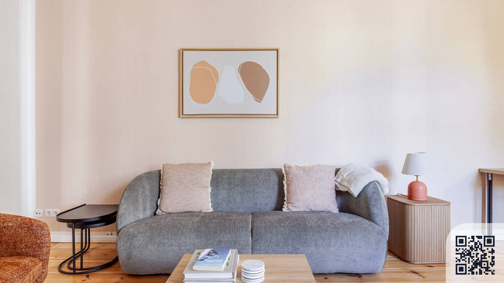 Diese möblierte Wohnung befindet sich in Mitte, Berlins erstem und zentralsten Bezirk. Die Gegend ist reich an Geschichte, viele der Stadtmuseen und Sehenswürdigkeiten liegen in der Nähe. Das lebendige Mitte ist eines der wichtigsten Geschäftsviertel Berlins und bietet eine vielfältige Restaurantszene mit Optionen für jedes Budget. Sie können in einem gehobenen Restaurant wie der Schnitzelei Mitte schlemmen oder den trendigen Hackeschen Markt besuchen, wo sich Cafés und Geschäfte in labyrinthartigen Innenhöfen befinden. Mitte eignet sich auch hervorragend für Sightseeing: Das Brandenburger Tor und die Museumsinsel befinden sich ebenfalls im Viertel. Weitere Highlights sind der berühmte Checkpoint Charlie, der Tiergarten und der Berliner Zoo. Zudem gibt es den historischen Tiergarten, einen der größten öffentlichen Parks Deutschlands, der sich perfekt für eine Auszeit in der Natur eignet. Ein weiterer interessanter Ort ist Moabit, früher eine bedeutende Grenze zwischen Ost- und Westberlin. Der Berliner Hauptbahnhof liegt ebenfalls in Mitte, und das Viertel ist mit mehreren U-Bahn- und S-Bahn-Linien bestens angebunden.