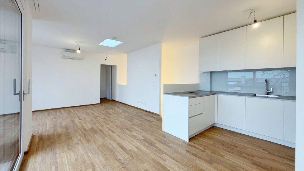 *Ausstattungshighlights*: Designerküchen von EWE mit hochwertigen Miele-Geräten - Grifflose Küche mit Unterschränken und raumhohen Oberschränken mit Schattenfuge - Slowmotion-Schubladen und eingefrästes LED-Band über die gesamte Länge - Weiße Küchenfront mit Anti-Fingerprint-Beschichtung - Dünne graue Schichtstoff-Arbeitsplatte - Miele-Geräte: Herd, Dunstabzug, Geschirrspüler, Gefrier-Kühl-Kombination Klimaanlage in den Maisonette-Wohnungen Feinsteinzeug-Fliesen (30x60 cm) und Eiche-Natur-Parkettböden Terrassen mit elegantem Feinsteinzeugbelag elektrische Außenrollläden Video-Gegensprechanlage exklusive Sanitäranlagen der Marke Laufen und Armaturen von Hansgrohe Luftwärmepumpe / Fußbodenheizung mit Kühlfunktion 9 Parkplätze verfügbar, welche um € 120 inkl. BK und USt. angemietet werden können.