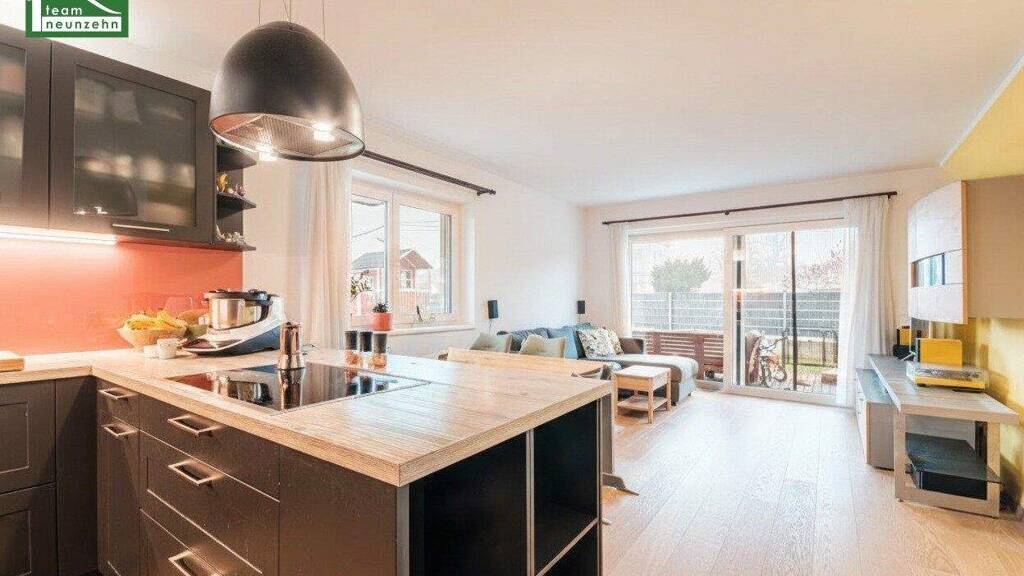 Das Herzstück der Wohnung bildet die großzügige Wohnküche mit direktem Zugang zur ca. 17 m² großen Terrasse und dem ca. 84 m² großen Eigengarten - perfekt für entspannte Stunden im Freien, Gartenliebhaber oder Familien.