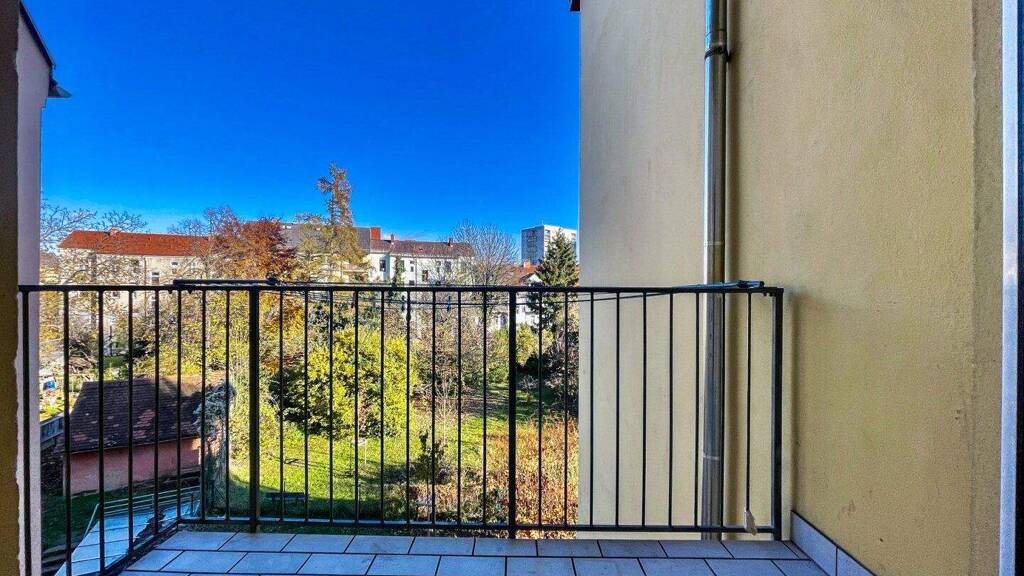* Balkon mit Ausblick: Der nach Osten ausgerichtete Balkon lädt dazu ein, das Frühstück oder den Nachmittagskaffee im Freien zu genießen.
