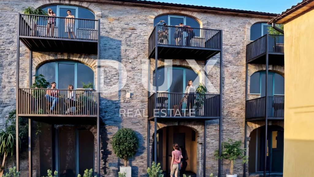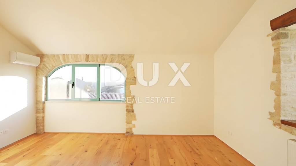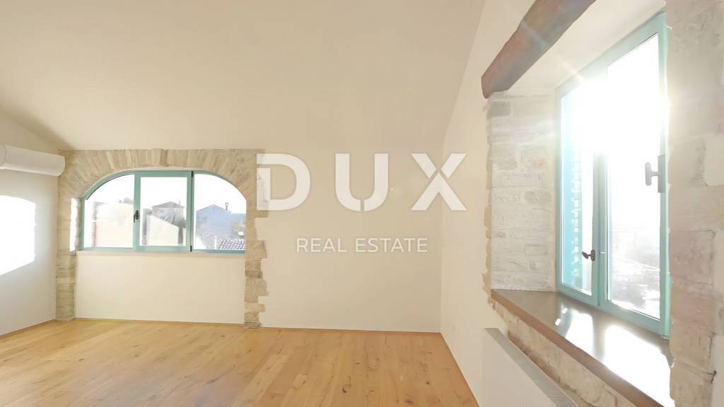 Die mittelalterliche Stadt Buje liegt im nordwestlichen Teil der istrischen Halbinsel auf einem Hügel mit herrlichem Blick auf das Meer, die umliegenden Hügel, Weinberge und Olivenhaine, für die diese Gegend berühmt ist. Die Nähe zum Meer, der Einfluss des mediterranen und milden kontinentalen Klimas, die Tradition in landwirtschaftlicher Produktion, Jagd und Tourismus, die hügelige Landschaft sowie die erhaltene und unberührte Natur machen das Gebiet der Stadt Buje zu einem der attraktivsten Gebiete der istrischen Halbinsel. In einem kleinen Dorf in der Nähe der Stadt Buje befindet sich ein Doppelhaus aus Stein, das sich über das Erdgeschoss und zwei Stockwerke erstreckt und insgesamt acht Wohneinheiten beherbergt. Bei der Renovierung wurden langlebige und zuverlässige Materialien verwendet, die langfristige Zufriedenheit und Sicherheit des Wohnens garantieren. Die Raumplanung jeder Etage wurde detailliert durchgeführt, was zu einer hochwertigen Raumaufteilung führte, die eine optimale Raumausnutzung gewährleistet. Zum Verkauf steht eine Wohnung mit einer Wohnfläche von 63,21 m im zweiten Stock des Gebäudes. Sie besteht aus einem Schlafzimmer, einem Büro, einem Badezimmer, einem Flur und einem offenen Raum, der Wohnzimmer, Esszimmer und Küche mit Zugang zu einem 4,5 m großen Balkon vereint. Zur Wohnung gehört ein Parkplatz. Diese Wohnung bietet die Möglichkeit für ein komfortables Familienleben und ist eine Investition zur touristischen Vermietung.