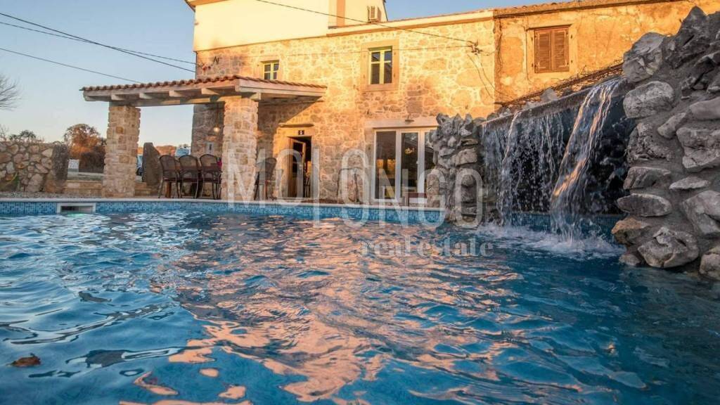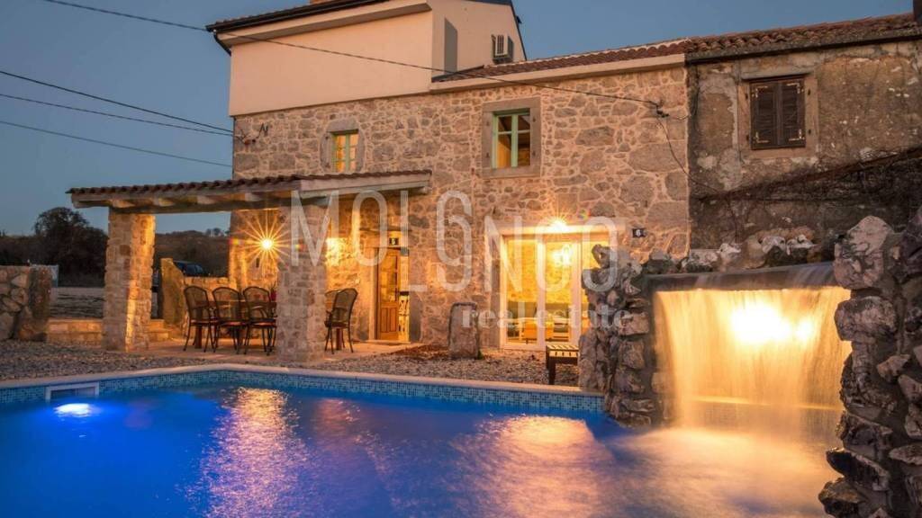 Ein wunderschön angepasstes Ferienhaus aus Stein in der Nähe von Vrbnik. Das Haus erstreckt sich über drei Etagen (Erdgeschoss, erster und zweiter Stock) und verfügt über 4 Schlafzimmer.