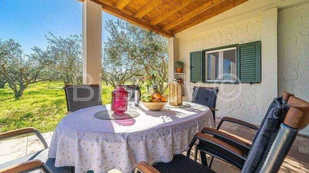 Stari Grad, einstöckiges Haus mit einer Grundrissfläche von 51 m2 plus einer überdachten Terrasse von 33 m2, gebaut auf einem Grundstück von 2360 m2. Das Haus wurde auf einem landwirtschaftlichen Grundstück gebaut und erhielt eine Legalisierungsurkunde (Entscheidung über den abgeleiteten Zustand). Auf dem Land wurden 60 Olivenbäume gepflanzt, die gepflegt werden und Einkommen bringen. Das Haus hat eine Nettofläche von 51,32 m2. Es besteht aus einem Wohnzimmer, einer Küche, einem Badezimmer und einem Schlafzimmer mit separatem Eingang. Vor dem Haus befindet sich eine überdachte Terrasse von 33 m2. Der Innenraum lädt zum Verweilen ein und ist im mediterranen Stil dekoriert. Neben dem Haus gibt es einen mit Steinen bedeckten Außengrill, während sich am Ende des Olivenhains ein 5 m2 großer Werkzeugraum befindet. Es besteht die Möglichkeit, ein hohes Dachgeschoss zu errichten und ein Schwimmbad entsprechend dem Raumplan der Altstadt zu bauen. In diesem Fall eignet sich die Immobilie ideal für die Entwicklung eines ländlichen Haushalts und die Bereitstellung touristischer Dienstleistungen. Das Haus ist kategorisiert und verfügt über eine gültige touristische Vermietung sowie eine registrierte OPG. Die Entfernung zur Altstadt beträgt 700m, zum Fährhafen 2,2 km. Der Standort ist gut über die Straße angebunden und bietet gleichzeitig einen perfekten Zufluchtsort im Grünen der Olivenbäume und eine natürliche Oase, die alles bietet, was Sie für einen ungestörten Urlaub und Genuss benötigen. Das Grundstück ist an die kommunale Infrastruktur (Strom und Wasser) angeschlossen. Das Anwesen ist in Ordnung und das Haus und der Garten sind legalisiert.
