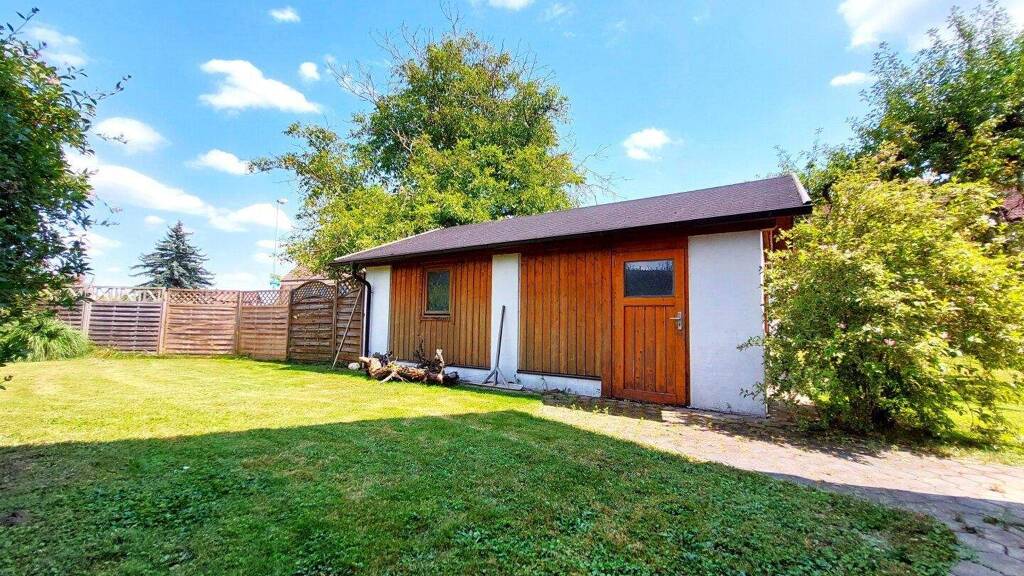 Zum Haus gehört ein bereits teilweise eingezäunter Garten mit einem Pavillon und einem Nebengebäude, wo Sie ausreichend Stauraum vorfinden. Das Nebengebäude kann ebenfalls als Abstellplatz für Ihr Auto genutzt werden.