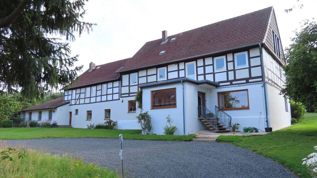 Das umfassend sanierte Fachwerkhaus bietet auf dem 10.000 qm großen Grundstück mit einer Wohnfläche von ca. 570 qm Wohnfläche alle Möglichkeiten; etwa zur Alleinnutzung, zum Mehrgenerationenwohnen oder für das Wohnen und Arbeiten unter einem Dach.
