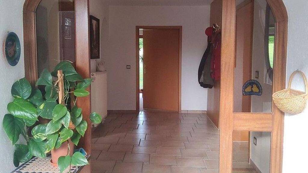 Drei separate Hauseingänge verschaffen Zugang zu den verschiedenen Wohnetagen und zu einer Gästewohnung. Die im Erdgeschoss gelegene große Küche verfügt über moderne Einbauelemente mit Echtholzfronten und einem Kaminofen. Im Wohnzimmer befindet sich ein weiterer Kaminofen. Daneben verfügt das geräumige Haus über drei Tageslichtbäder.