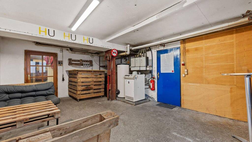 Über eine Wendeltreppe mit schwarzem Geländer und hellen Stufen erreichst du das Erdgeschoss - hier beginnt der vielseitig nutzbare Bereich der Wohnung. Eine Waschküche mit Dusche, Waschmaschinenanschluss, Einbauschrank und charmanten Retroelementen bietet funktionalen Komfort. Direkt daneben befindet sich ein beheizbarer Büroraum - hell gefliest, mit zahlreichen Steckdosen und viel Tageslicht. Vom Büro aus gelangt man in den Heizraum sowie in die geräumige Werkstatt, die aktuell auch als Partyraum genutzt wird. Der große, offene Raum hat direkten Zugang in den Innenhof - ideal für Bastler, Schrauber oder kreative Projekte. Zwei Stufen führen in ein separates Gäste-WC mit WC, Pissoir und Waschbecken, gestaltet mit auffälligem rot-weiß-schwarzem Fliesenboden. Ein weiterer Lagerraum mit Estrichboden und gefliestem Abschnitt steht ebenfalls zur Verfügung und ist durch einen Vorhang unterteilt - perfekt für Vorräte, Geräte oder saisonale Lagerung.