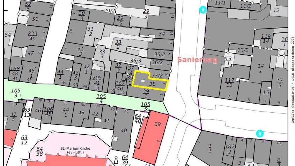 Das Haus steht auf einem rund 188?m² großen Grundstück und ist in das gewachsene Stadtbild der Hansestadt Uelzen eingebettet. Die umliegenden Fachwerkhäuser und die unmittelbare Nähe zu Einkaufsmöglichkeiten, Cafés und Dienstleistern unterstreichen die Attraktivität dieser Lage.