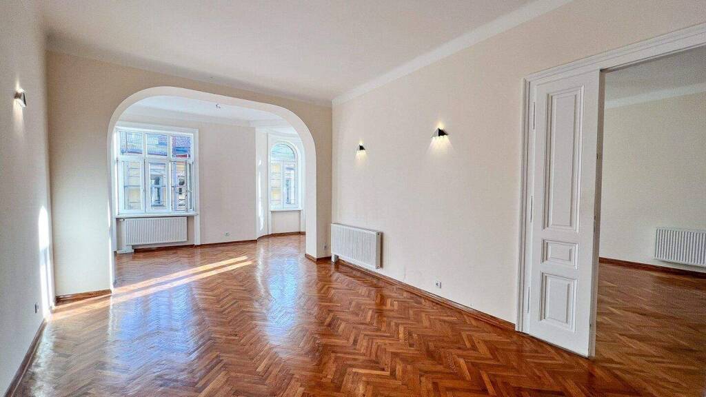 Vermietet wird eine helle, 130 m² große Altbauwohnung mit 10 m2 großen hofseitigen Balkon im 3. Liftstock im 18. Wiener Bezirk, Nähe Sternwartepark in der Hofstattgasse.