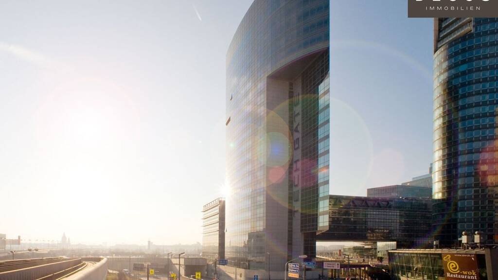 Die raumhohe Verglasung verleiht nicht nur eine markante und elegante Außenansicht, sondern vor allem einen ungehinderten Ausblick aus den Büros auf Wien und die Grünflächen an der Donau. Das architektonische Konzept stammt von Holzbauer und Frank und glänzt mit hochwertigem Bürostandard.