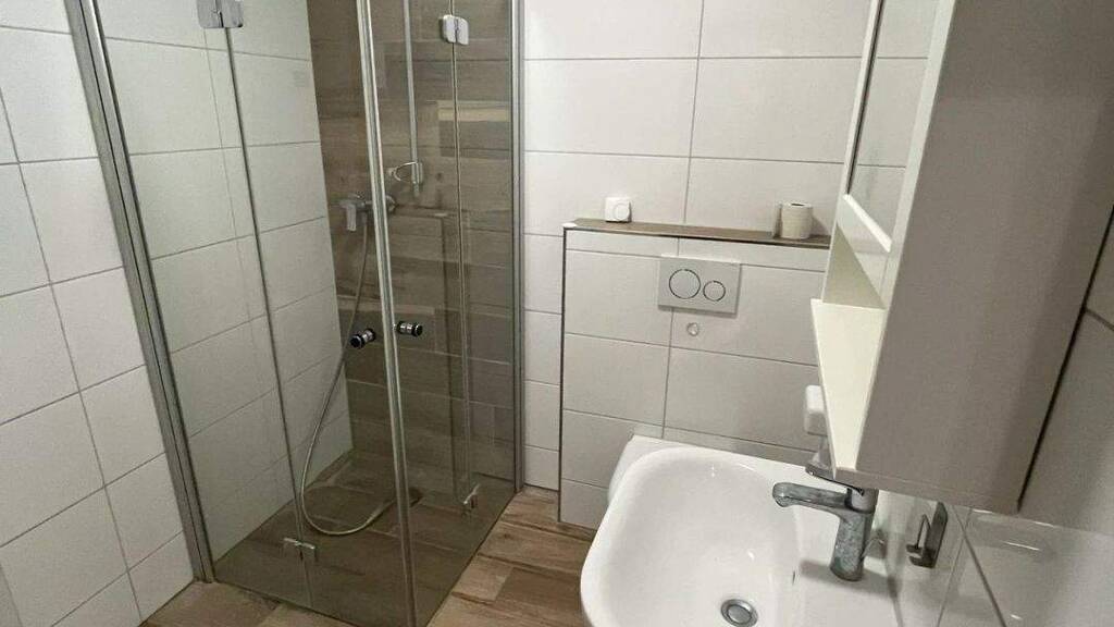 Das innenliegende Dusch-Bad wurde vor ca. 4 Jahren komplett erneuert.Die Wände sind Raufaser-weiß tapeziert. Der Boden ist weiß gefliest.Die Wohnung wird unrenoviert übergeben und kann bei Auszug unrenoviert zurückgegeben werden.Ein kleiner Kellerraum gehört zur Wohnung.