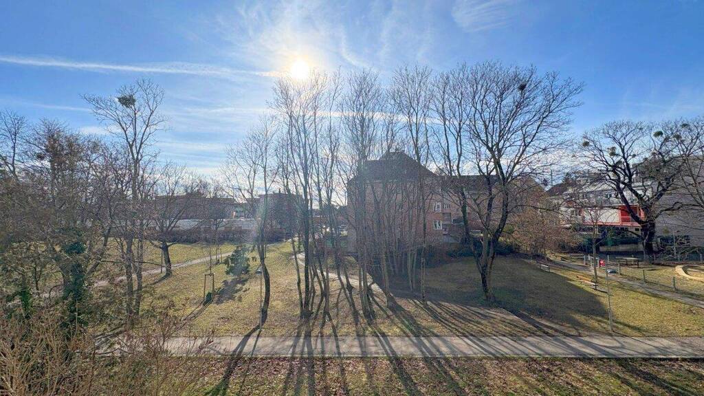Die Nord- Süd- Ausrichtung sorgt für ein angenehmes Raumklima, zwei der Schlafzimmer sind zudem auf einen schönen Garten mit Altbaumbestand ausgerichtet.