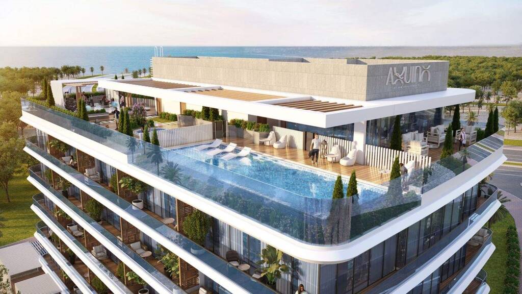 Neben seinem modernen Erscheinungsbild besticht das Gebäude durch eine sorgfältig ausgewählte Palette an Annehmlichkeiten, die den täglichen Komfort der Bewohner optimal ergänzen. Inspiriert von der Ruhe des Insellebensstils, bieten die Dachterrassenpools für Erwachsene und Kinder einen herrlichen Panoramablick. Die elegant gestalteten Entspannungsbereiche umfassen Grillplätze und Essbereiche im Freien ? ideal für gemeinsame Momente mit Familie und Freunden.