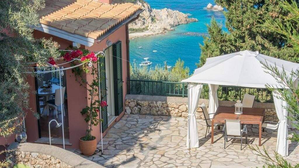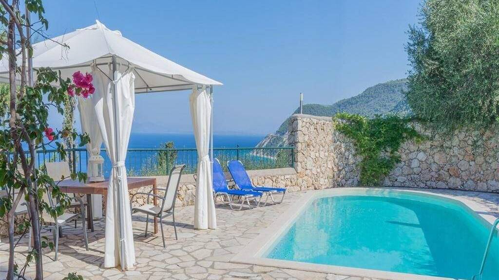 Das charmante Ferienhaus liegt in den grünen Hügeln in einer abgeschlossenen, privaten Ferienanlage. Das 2014 erbaute Haus wirkt hell und luftig. Die Glastüren lassen die Sonne und die sanfte Meeresbrise am Nachmittag herein. Von der überdachten Veranda und den mit blühenden Topfpflanzen geschmückten Steinterrassen überblicken Sie die majestätischen grünen Hügel und das azurblaue Meer.