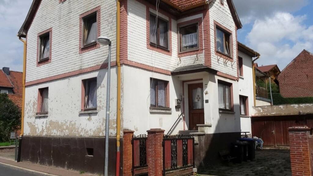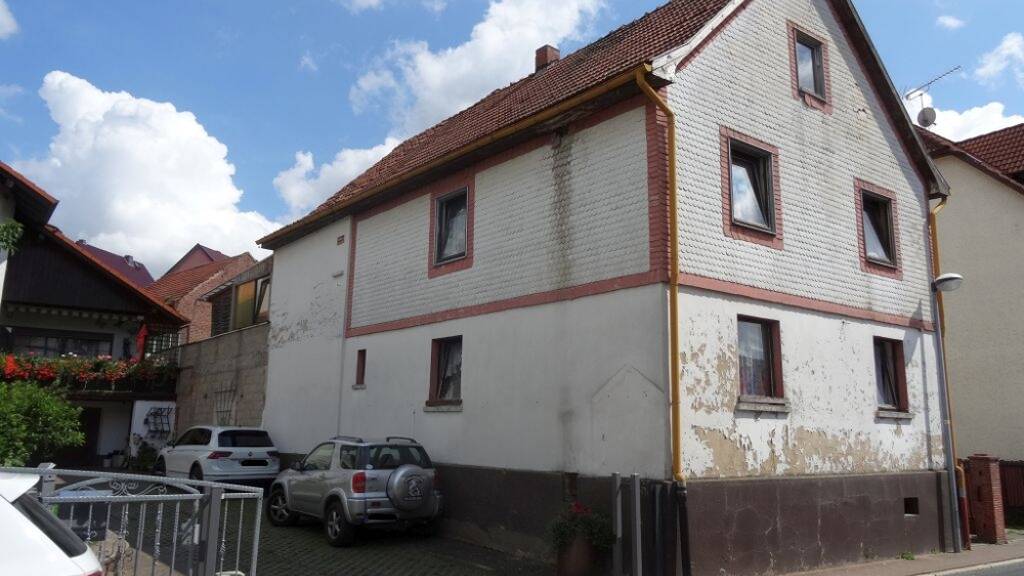 Für Handwerker: versteigert wird ein Anfang des letzten Jhh. in Massivbauweise errichtetes ZFH in Bad-Salzungen-Tiefenort. Die Fassade ist teils mit Eternitplatten verkleidet, teils verputzt. Ausserdem steht auf dem Grundstück ein Anbau mit 2 Garagen und einem Abstellbereich.