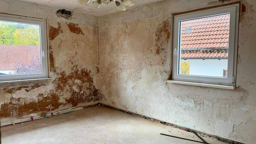 -Zimmer im Obergeschoss zum Teil im Rohbau, da Renovierung angefangen wurde