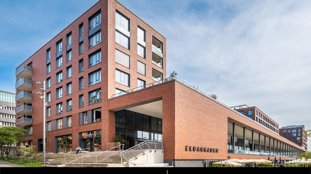 Das moderne Büro befindet sich in dem Gebäude HeimatHafen und ist Teil des Gebäudekomplexes Elbarkaden. Dieses Neubauprojekt aus dem Jahr 2012 kombiniert Wohnraum mit Fläche für Gewerbe, Kultur und Gastronomie und setzt dabei auf nachhaltige und energieeffizente Architektur.
