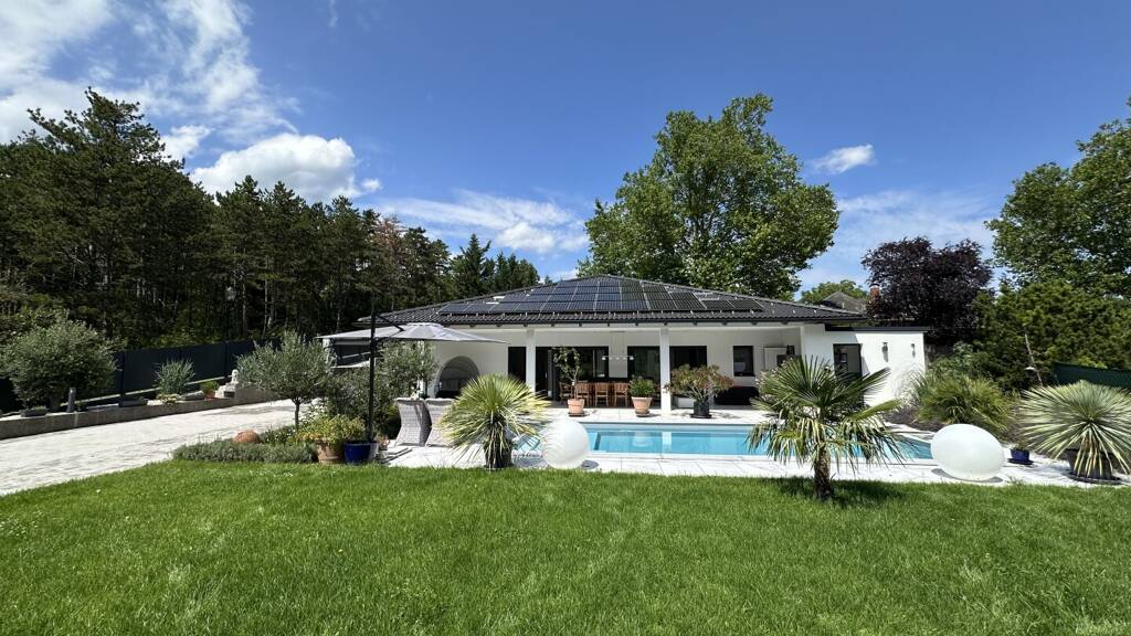 In einer der besten Wohnruhelagen in Bad Fischau eingebettet liegt dieser neue, tolle und sehr stylische Bungalow mit idealer Nähe zu Wien. Das Haus ist perfekt für jene Menschen, die Lebensqualität schätzen und sowohl Ruhe als auch die Nähe zum Zentrum genießen möchten. Das uneinsehbare Grundstück in einer Sackgasse am Waldrand bietet absolute Ruhe, Privatsphäre und Erholung. Das Gebäude, welches 2022 in massiver Bauweise mit durchdachter Raumgestaltung und einem traumhaften Garten errichtet wurde, verfügt über eine Doppelcarport. Die tolle Poolanlage und die Salzsauna runden das perfekte Gesamtbild ab.