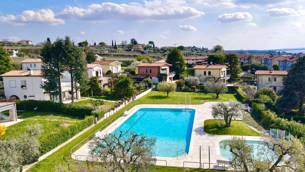 Zweifamilienhaus in Wohnanlage “S.TA CRISTINA” , nur ca. 300 m vom See und 400 m vom Zentrum entfernt, mit 2 Pools (1 für Kinder) Privatgarten,Stellplatz und Klimaanlage.