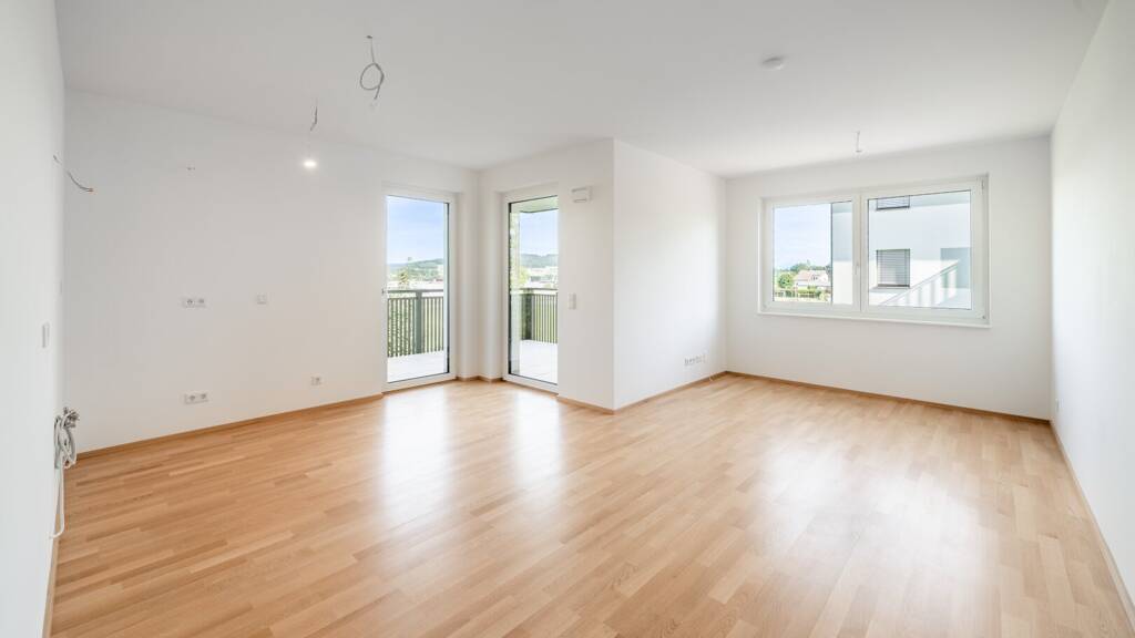 Der offene Wohn- und Essbereich ist das Herzstück der Wohnung und der ideale Ort für gesellige Stunden mit Familie und Freunden. Ein weiteres Highlight ist der nach Südosten ausgerichtete Balkon, der mit einem herrlichen Ausblick und viel Sonnenlicht zum Verweilen im Freien einlädt.