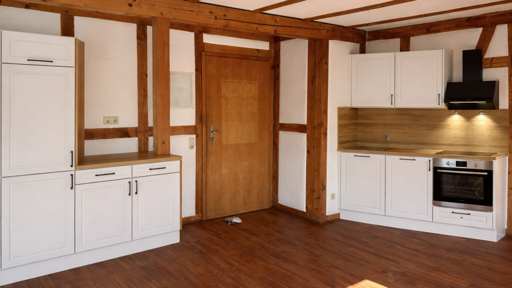 Der durchdachte Grundriss eignet sich ideal für Singles oder Paare, die eine gemütliche Wohnung mit Charakter suchen. Die sichtbaren Elemente des Fachwerkhauses verleihen dem Zuhause eine besondere Note und machen jede Einheit einzigartig.