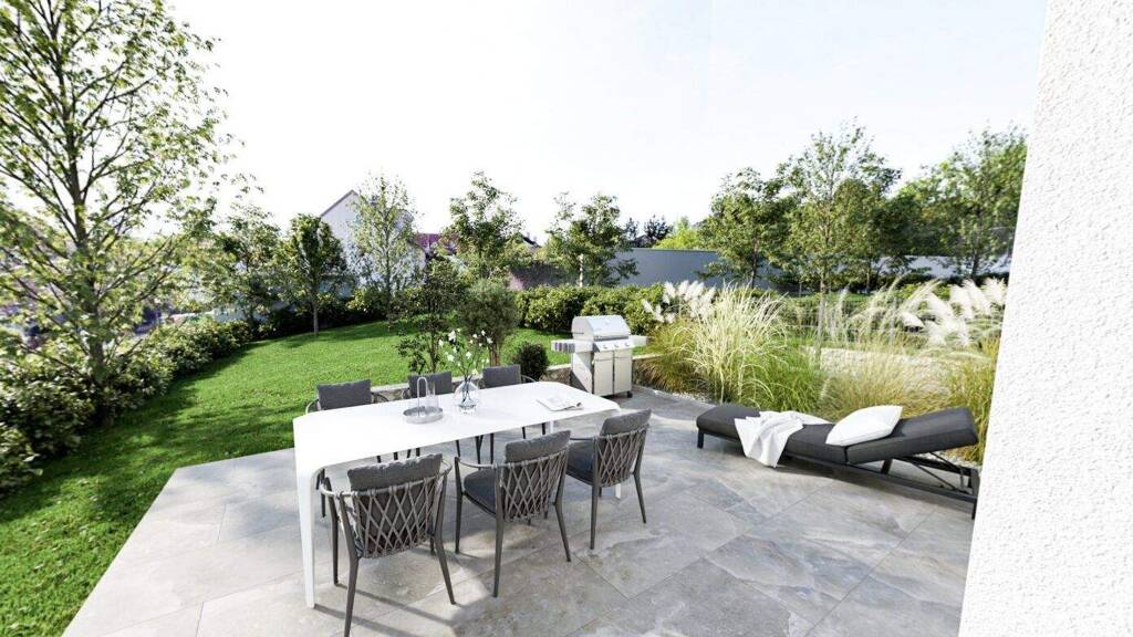 Diese einzigartige Gartenresidenz bietet ca. 171,15 m² Wohnfläche, eine 27,45 m² große Terrasse und einen beeindruckenden Privatgarten von 229,22 m² - eine seltene Kombination aus Wohnkomfort und Natur. Die Terrasse ist südseitig ausgerichtet und ideal für laue Abende im Freien - vom Lounge-Bereich über Essplatz bis zum Sonnenbad ist alles möglich. Der großzügige Wohn-/Essbereich mit raumhohen Fensterfronten eröffnet direkten Zugang zum Garten. Drei zusätzliche helle Zimmer bieten Rückzugsräume, während zwei voll ausgestattete Bäder und ein Gäste-WC höchsten Komfort bieten. Der ausgewogene Grundriss wird durch einen großzügigen Vorraum, Abstellmöglichkeiten und natürliche Lichtführung vervollkommnet.