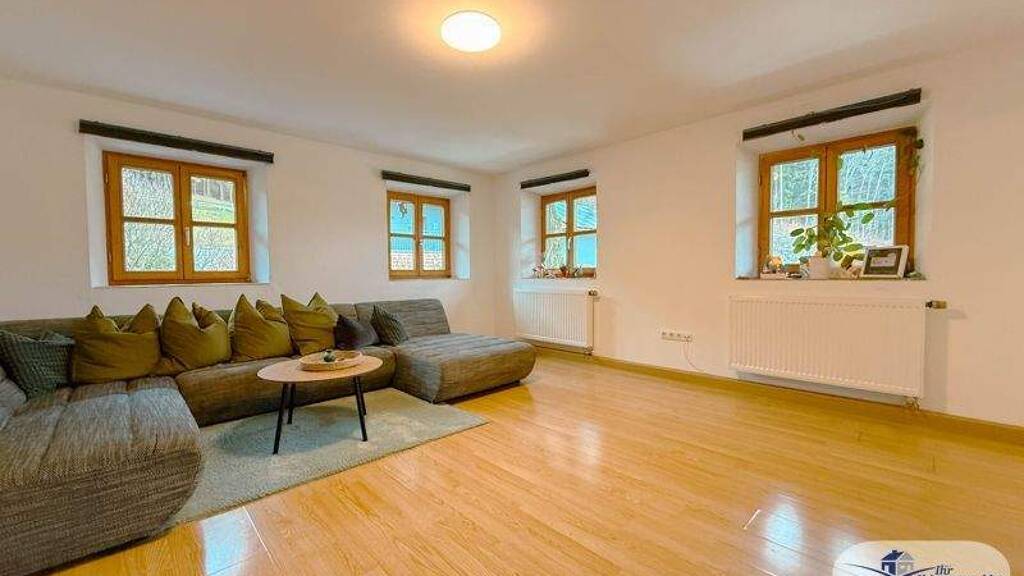 Bereits beim Betreten der Wohnung über die Außentreppe empfängt Sie ein großzügiger Eingangsbereich mit viel Platz für Garderobe und Stauraum. Die klassische Grundrissgestaltung eines Bauernhauses eröffnet mit vier großzügigen Zimmern vielfältige Nutzungsmöglichkeiten als Wohn-, Schlaf-, Kinder- oder Homeofficebereiche. Damit bietet die Wohnung sowohl Paaren mit erhöhtem Platzbedarf als auch Familien ideale Voraussetzungen.