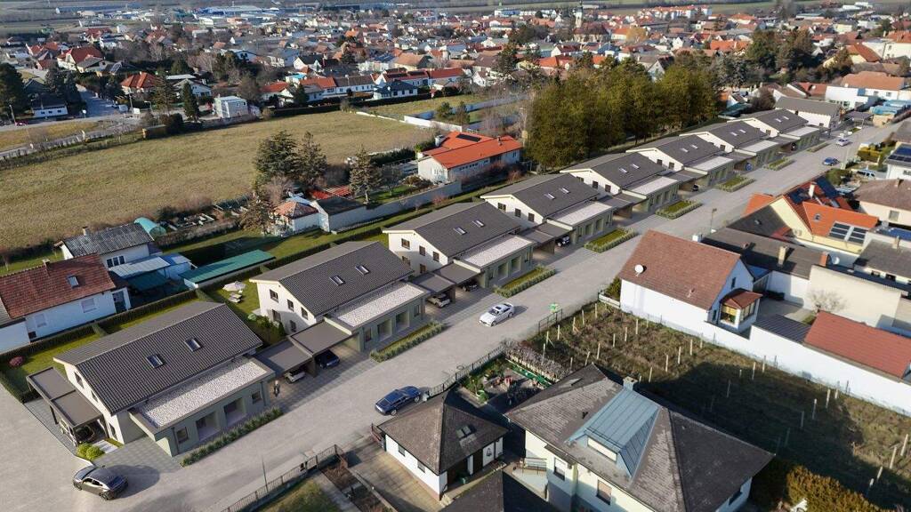 Die 16 Doppelhaushälften befinden sich in ruhiger und idyllischer Lage in Hof am Leithaberge, einer