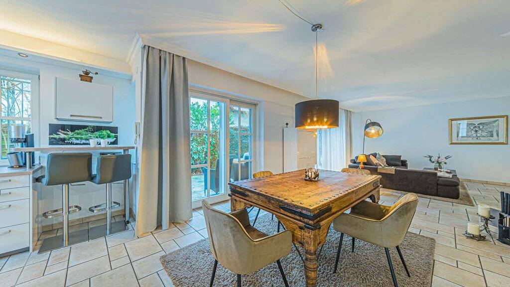 * Allgemein - hochwertige Möblierung im gut kombinierten Stil - hochwertiges anderer Boden - Abstellraum * Technische Ausstattung - eigener Internetanschluss - Fernseher - Waschmaschine und Trockner - Fußbodenheizung, Kamin, Gegensprechanlage mit Video - bodentiefe Fenster, elektrische Außen-Rolläden