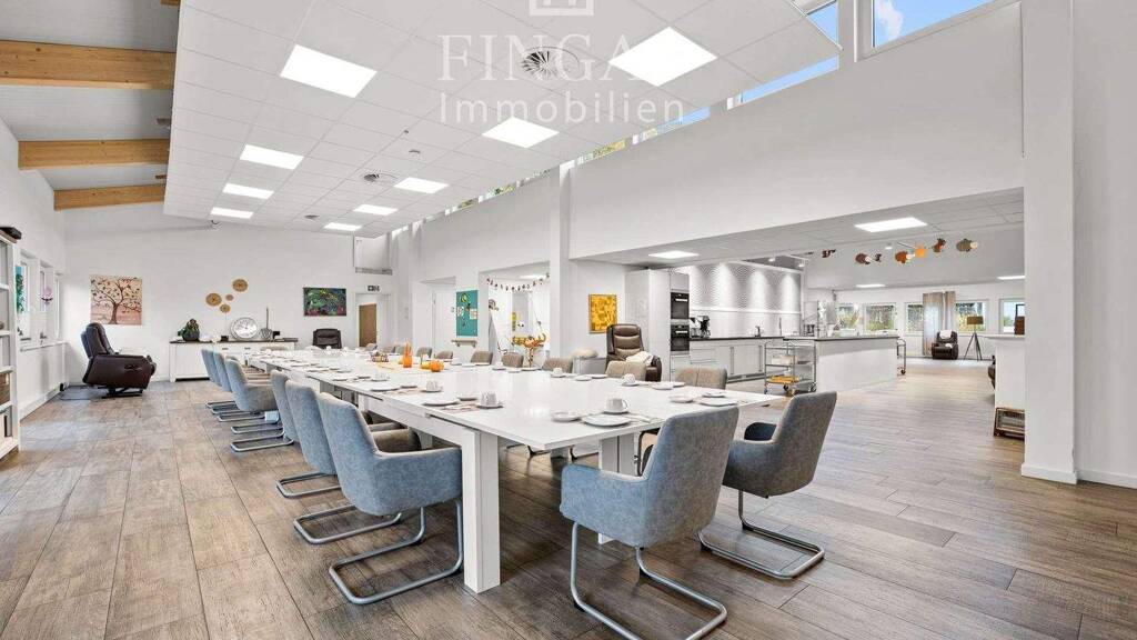 Die Immobilie bietet auf einer Gesamtfläche von ca. 475 m² ein durchdachtes Raumkonzept mit großzügigen Aufenthaltsbereichen, lichtdurchfluteten Räumen, einer großen offenen Küche sowie mehreren Ruheräumen und Büroräumen. Die gesamte Einrichtung ist barrierefrei gestaltet und somit optimal auf die Bedürfnisse von Seniorinnen und Senioren ausgerichtet.