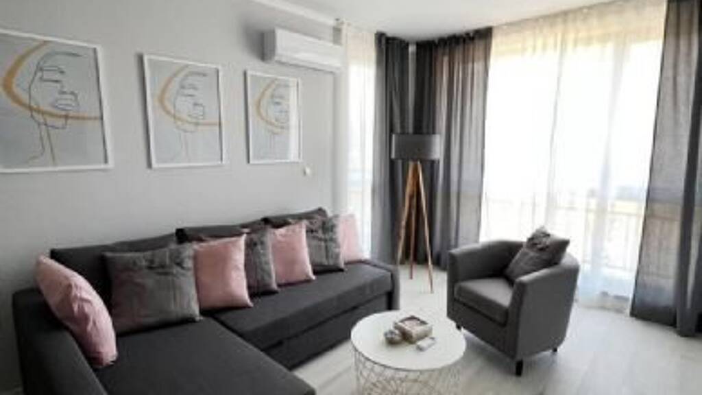 Infrastruktur des Komplexes externes Schwimmbad mit Kinderbereich, Bistro, Restaurant, Internet, Spielplatz, Supermarkt, Geschäft, Apotheke, Rezeption, Parkplatz, ganzjährig Bewachung Raumaufteilung Stilvolle Zweizimmerwohnung. Voll möblierte, helle und stilvolle Wohnung im Erholungsgebiet von Sveti Vlas. Die Wohnung ist komplett mit allem ausgestattet, was Sie brauchen: Schrank, Bett, Sofa, Küche, Haushaltsgeräte. Die Wohnung befindet sich in fußläufiger Entfernung zum Meer und zum Strand sowie zum Geschäft.