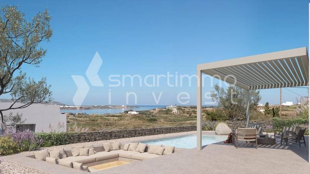 Gelegen im westlichen Teil von Paros, in der Nähe von Pounta, innerhalb des Bebauungsplans, mit freiem Blick auf das Meer, die Insel Antiparos und den Sonnenuntergang. Nur 600 m vom Meer, 2 km vom Hafen von Pounta, 6 km vom Flughafen und 7 km vom Haupthafen entfernt. Die Villa befindet sich im Bau und wird am 30. April 2026 fertiggestellt. Sie wird bezugsfertig übergeben, lediglich ohne Elektrogeräte (weiß und schwarz) sowie Möbel.