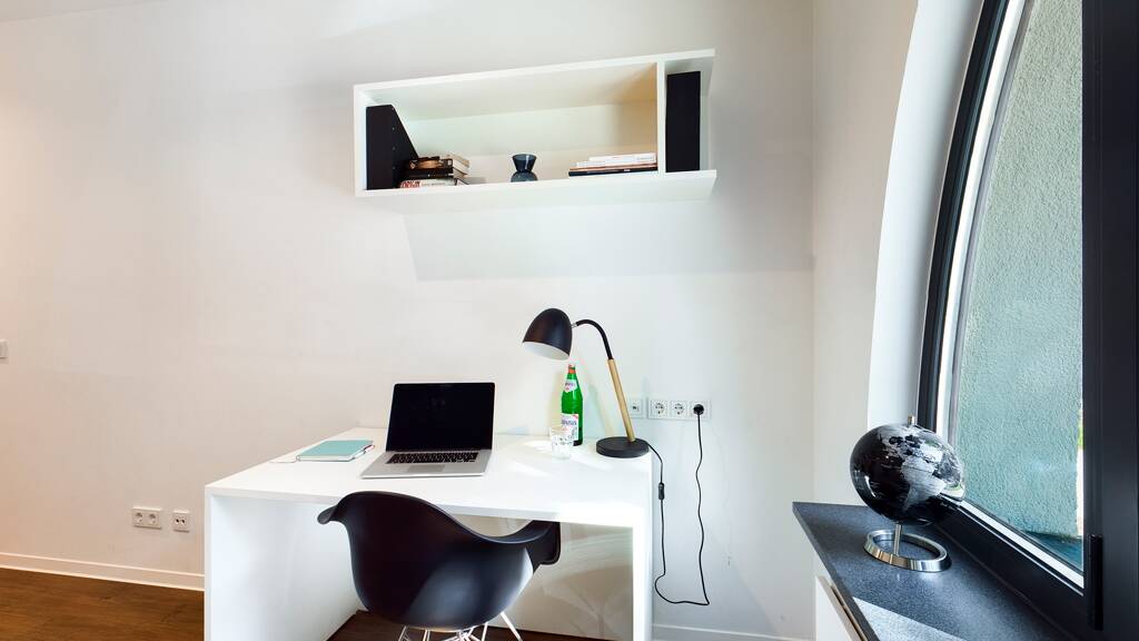 Die Bilder zeigen eine Musterwohnung im gleichen Gebäude. Die tatsächliche Aufteilung kann abweichen. Die abgebildete Deko ist nicht inklusive, die Ausstattung kann variieren.