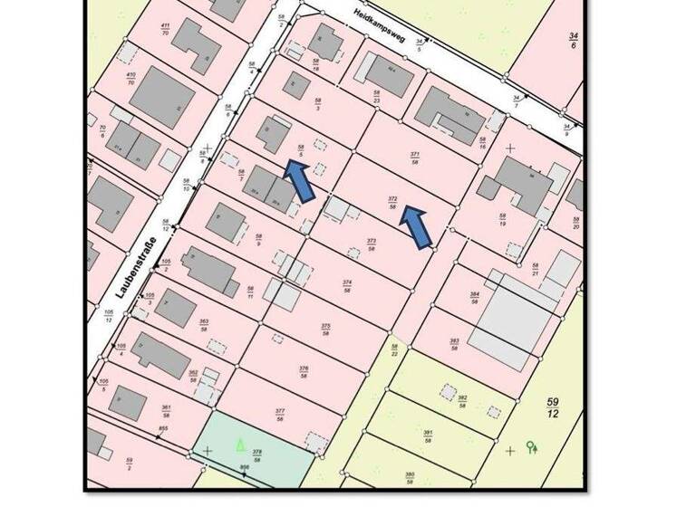 Beide Flurstücke haben eine Größe von jeweils ca. 620m² und befinden sich direkt hintereinander. Aktuell kann nur das vordere Grundstück nach § 34 BauGB neu bebaut werden. Eine neue Bebauung muss sich demnach in Größe und Erscheinung den Nachbargebäuden anpassen. Die Baulinie von der Laubenstraße ist einzuhalten - somit würde eine neue Immobilie ca. 9m von der Straße entfernt stehen und sich mit dem Garten nach Süd-Westen und damit zur Abendsonne hin ausrichten. Denkbar ist auch die Erstellung eines Doppelhauses, wie es die Nachbarn gestaltet haben. Die Bautiefe beträgt dort ca. 28m gemessen von der Grundstücksgrenze an der Straßenseite. Belastungen in Abt. II des Grundbuches liegen nicht vor - Baulasten sind ebenfalls auf dem Grundstück nicht eingetragen. Der Altbestand nebst Kellerfläche sowie die Vegetation der letzten Jahre müssen von den Erwerbern entfernt werden.